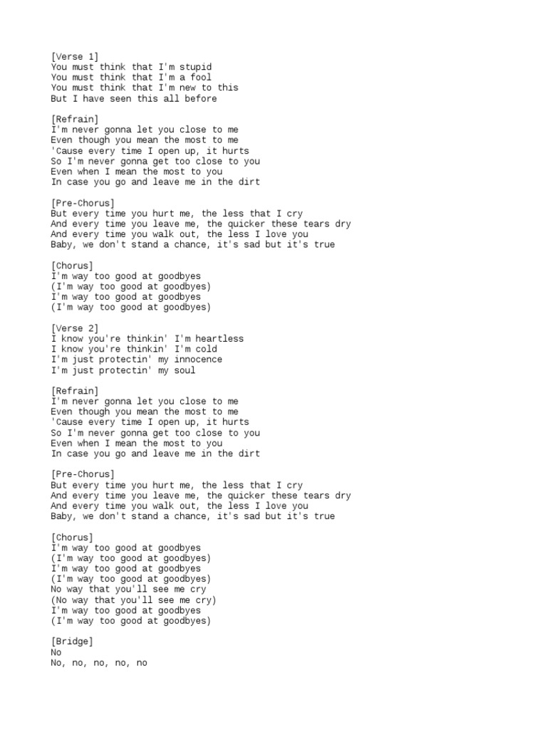 Every Time You Hurt Me The Less That I Cry / No way that you'll see me cry 절대 내가 우는 걸 보지 못할 거야.